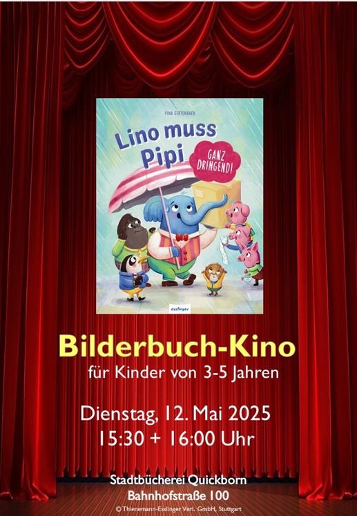 Am Dienstag, den 12. Mai 2026 lädt die Stadtbücherei wieder Kinder im Alter von 3-5 Jahren zum Bilderbuchkino ein.