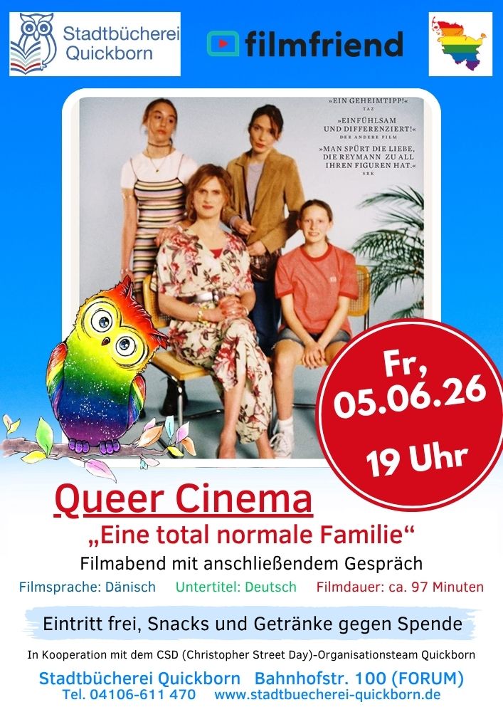 In Kooperation mit dem Quickborner Organisationsteam des Christopher Street Day (CSD) veranstaltet die Stadtbücherei Quickborn am Freitag, den 05. Juni um 19 Uhr einen queeren Filmabend.